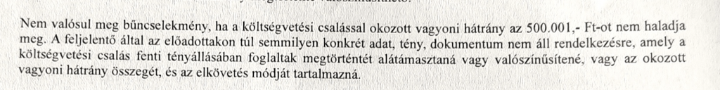 Az ügyben több be- és feljelentés született, ebből a büntetőügy érdekes számunkra. A NAV illetékes szervei a tényállás szerű és bizonyítékokkal alátámasztott feljelentést visszakézből elutasították, sok más hivatkozás mellett azzal, hogy az adócsalás 500,001 Ft összegtől bűncselekmény…