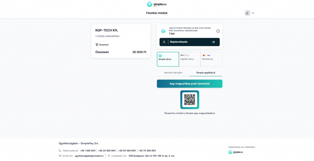 A Simple Pay oldalra történt átirányítást követően végezze el az online fizetéshez szükséges adatszolgáltatást!